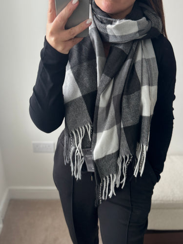 CHECKED Cashmere Scarf - Grey