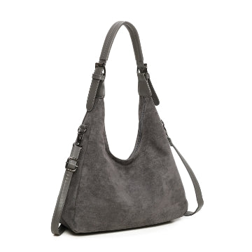 SAVANNAH Suedette Hobo Handbag - Grey